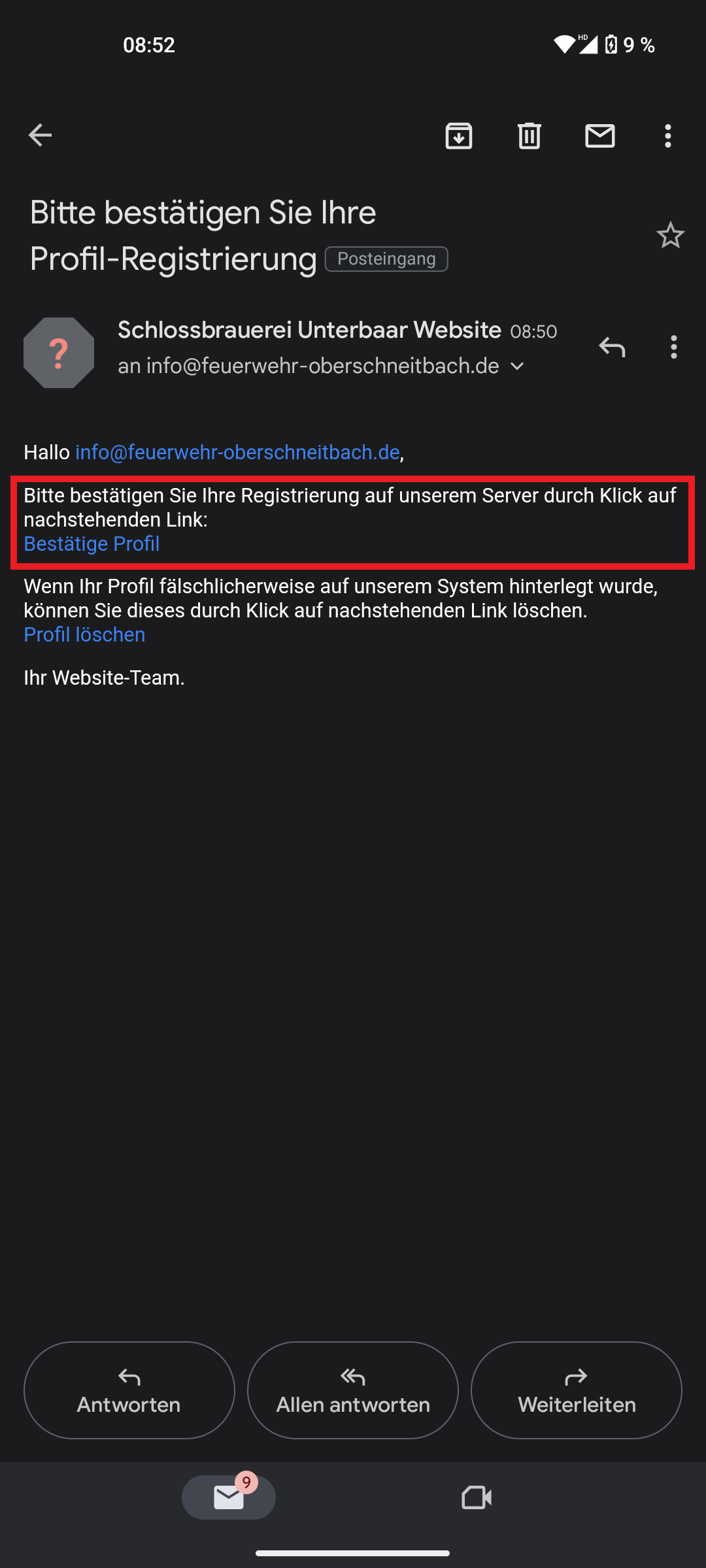 Nach erfolgreicher Registrierung solltest du folgendes sehen: